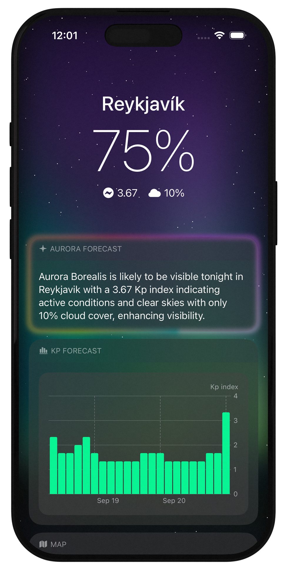 Borealis is a powerful Northern Lights tracking app that uses predictive AI to calculate the probability of experience Auroras in any location. Discover space weather forecasts, real-time aurora predictions, live webcam feeds and more.
